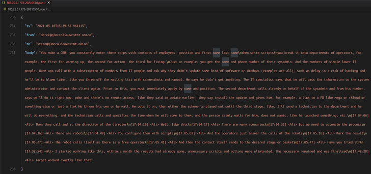 The file dump, published by malware research group VX-Underground, is said to contain 13 months of chat logs between affiliates and administrators of the Russia-affiliated ransomware group from June 2020 to February 2022, in a move that's expected to offer unprecedented insight into the criminal enterprise's inner workings.